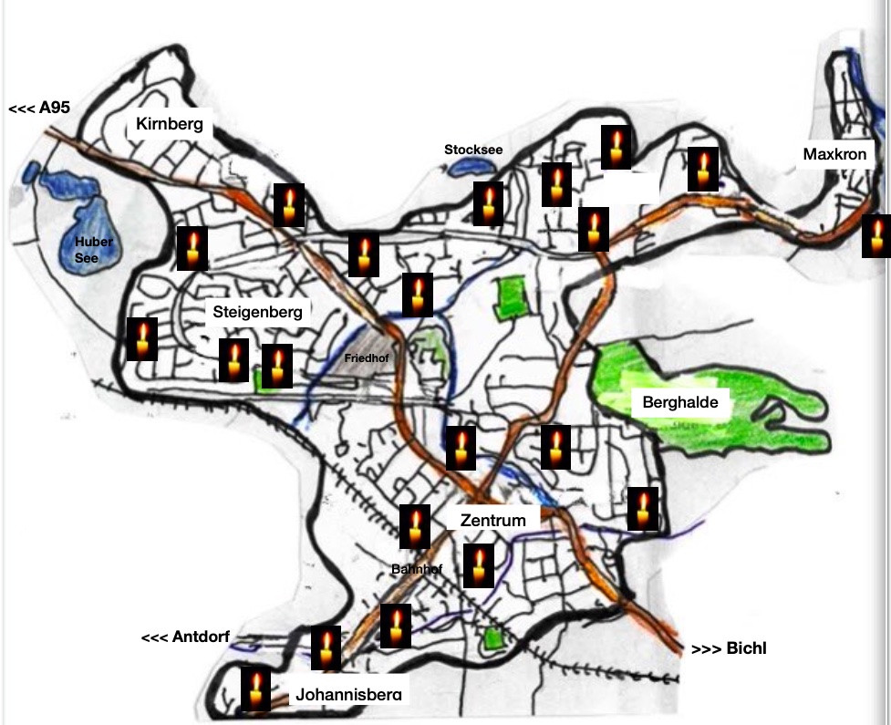 Lieder – Geschichte – Weihnachtsevangelium – Gebete – Segen – Friedenslicht von Betlehem (wenn möglich bitte Laterne mitbringen!)